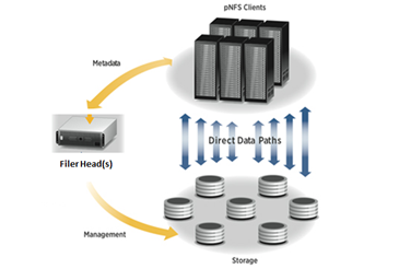 Parallel NFS (pNFS) is a part of the NFS v4.1 standard that allows compute clients to access storage devices directly and in parallel. The pNFS architecture eliminates the scalability and performance issues associated with NFS servers deployed today. This is achieved by the separation of data and metadata, and moving the metadata server out of the data path.